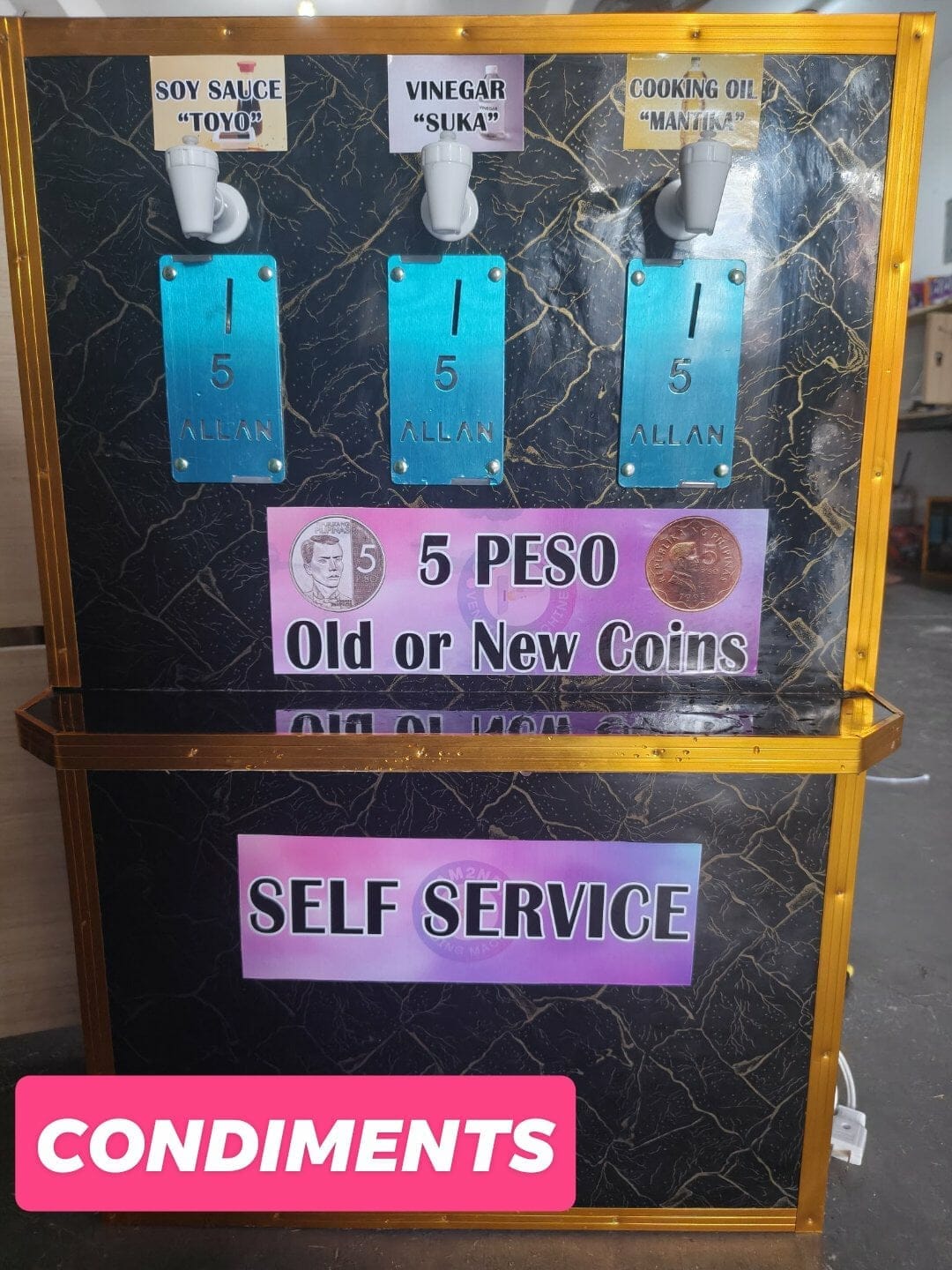 🥫 Condiments Vendo (Toyo, Suka, Mantika) – 3-in-1 dispenser with pump + faucet